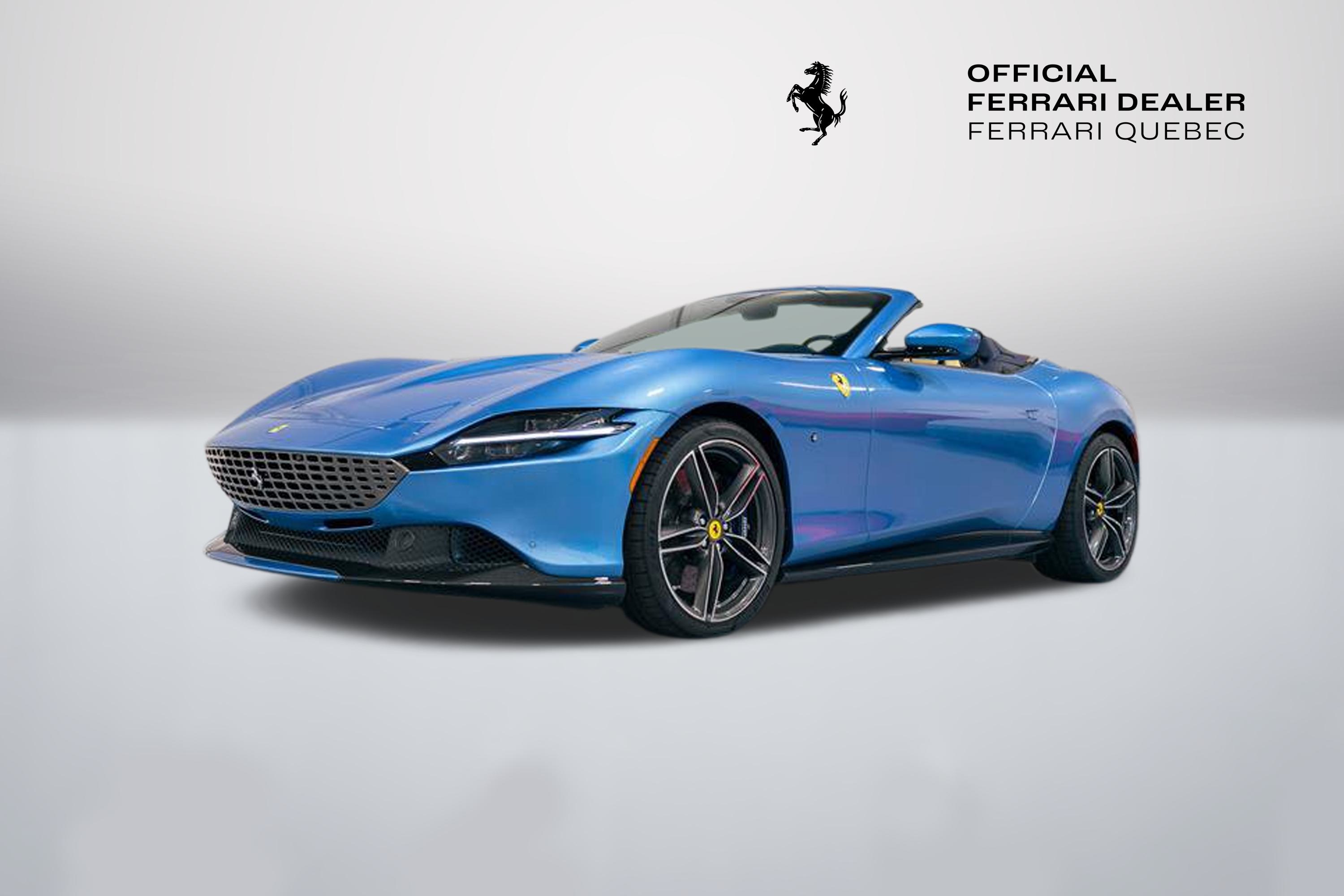 NEW20242,306 kmFerrari Roma SpiderCA$414,995exterior colorAzzurro Californiainterior colorCrema Available atFerrari Quebec